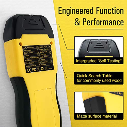 【Genaue Messungen entfernen Sie die Rate-Arbeit】0,1% Auflösung mit 2 verschiedenen Modi, messen Sie sowohl Holz als auch Bau-/Synthetikmaterial. Holz-Modus kommt mit 8 kalibrierten Skalen, messen Sie verschiedene Holzarten. Sie können “Selbsttesting” Hilfe in Schutzkappe integriert, stellen Sie sicher, dass das Gerät vor Gebrauch genau kalibriert ist.