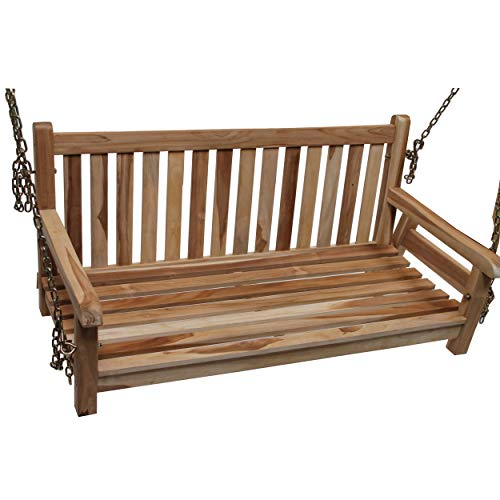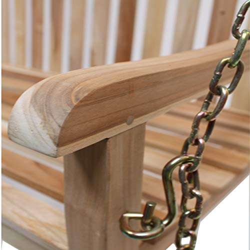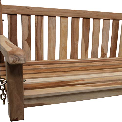 Im Lieferumfang sind eine Teak-Schaukelbank und zwei Ketten enthalten.