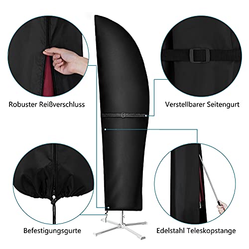 Specification: Dokon Ampelschirm Schutzhülle mit Stab, Sonnenschirm Abdeckung 2 bis 4 M Große Ampelschirm Schutzhülle, Wetterfeste, UV-beständig, Schneesicher, 420D Oxford Gewebe Sonnenschirm Hülle (280×40/81/50cm)
