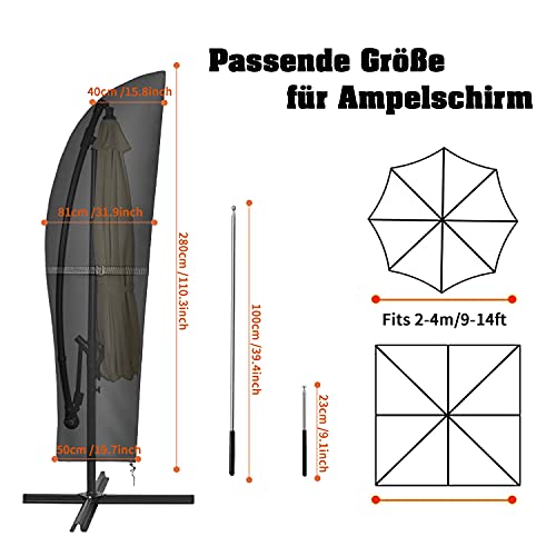 Dokon Ampelschirm Schutzhülle mit Stab, Sonnenschirm Abdeckung 2 bis 4 M Große Ampelschirm Schutzhülle, Wetterfeste, UV-beständig, Schneesicher, 420D Oxford Gewebe Sonnenschirm Hülle (280×40/81/50cm)